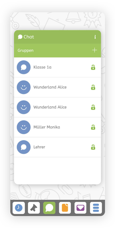 Über den integrierten Chat einfach und sicher Eltern und Schüler:innen informieren oder sich mit Kolleg:innen austauschen.